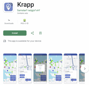 – 3): Þegar boðið hefur verið samþykkt færðu aðgang að Krapp appinu í Google Play Store — það er ósýnilegt öðrum, en þú getur byrjað að nota og prófa það strax í þínum síma.