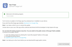 – 2): Þú færð boð frá Google Play um boð fyrir Android síma eða hér á síðunni, sem þú  þá samþykkir. Með því færðu aðgang að lokaða prófunarsvæðinu okkar.