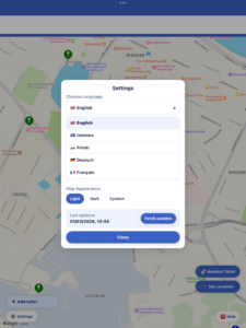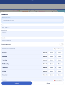 + Bæta við salerni – Nú getur þú bætt við salernum inn í appið, einfaldlega með því að fylla út i eyðublaðið. Þegar starfsfólk Krapp appsins er búið að fyrifara gögnin þá verður þessu bætt við fyrir alla notendur.