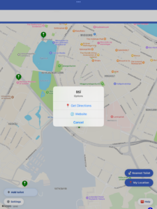 🚽 Leiðsögn að salerni – Með því að smella á „Skoða nánar„ tengilinn, þá opnast valmynd, þar sem þú færð val um leiðarvísun að salerninu, eða að skoða heimasíðu staðarins.